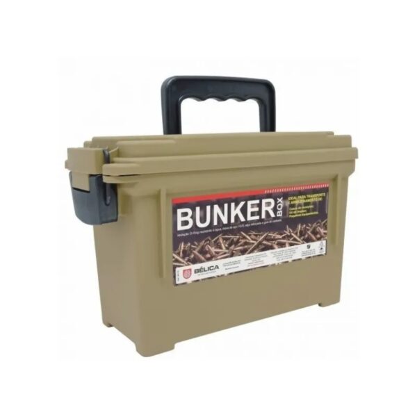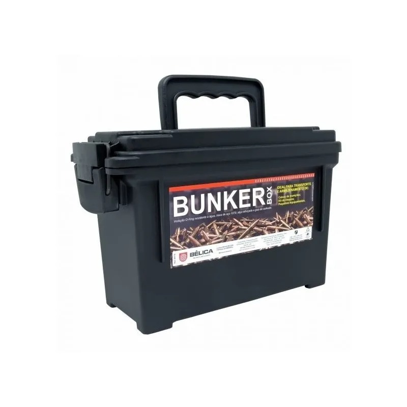 Descrição: A Caixa Bunker Box Bélica oferece o conceito das famosas caixas militares para armazenamento e transporte de munições, kits de limpeza e pequenos equipamentos indispensáveis para sua missão. Construída em polímero, possui vedação O-Ring, trava de aço 1070, alça reforçada e guia de cadeado, mantendo seu equipamento mais seguro.É ideal para estocar munições e insumos por um longo periodo de tempo. Especificações: Construída em Polímero Vedação O-Ring Trava de aço 1070 Alça reforçada Guia de cadeado Volume de 3,8L Medida INTERNA da Caixa: Comprimento topo: 24cm Comprimento base: 23cm Altura: 12,5cm Largura topo: 10,8cm Largura base: 9,8cm Itens: 01 Caixa Bunker Box