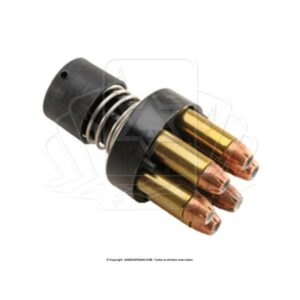 O Jet Loader 6 Tiros Cal.38 é indicado para armas Taurus de 6 tiros. Fácil de manusear e muito seguro, permite ao portador da arma um remuniciamento mais rápido após deflagrar todas as munições do tambor da arma. O funcionamento do aparelho é simples: As munições devem ser colocadas no Jet Loader e girando ele até ouvir o som do “click”, elas estarão presas e não caem nem soltam. Dentro do Jet Loader, entre as munições, tem um pino que expele elas quando ele é pressionado contra o tambor. Este pino só é acionado se os projéteis já estiverem dentro do tambor, garantindo assim que nenhuma munição irá cair na hora da recarga. Descrição Técnica: Remuniciador para revólver 6 tiros calibre .38 Taurus. Produzido em quatro partes plásticas e uma mola de aço carbono. Medidas aproximadas: 6,5 cm X 3,5 cm. Peso: 45 gramas.