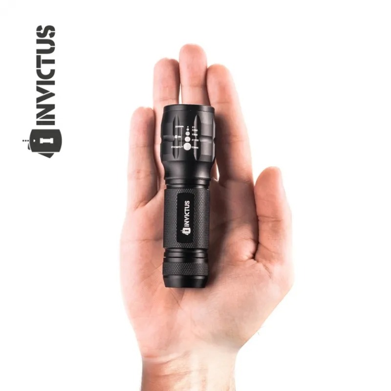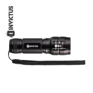 A Lanterna Tática Invictus One é a compacta ideal para quem quer aliar o desempenho à praticidade. Ela funciona com pilhas AAA, o que assegura seu uso em qualquer situação. É resistente à água, possui zoom regulável e três funções que incluem, além de luz alta e baixa, o estrobo, utilizado para desorientar o alvo/oponente em situações de combate. Descrição Técnica: – Funciona com pilhas AAA. – 80 Lumens. – 6 horas de autonomia. – Resistente à água (IPX6). – 3 funções. – Compacta. – Acionamento traseiro multifunção: alta, baixa e estrobo. – Empunhadura ergonômica com textura antiderrapante e fiel. – Design tático compacto, em alumínio aeroespacial. – Foco regulável com função zoom. – Acompanha adaptador para pilhas AAA. – Peso: 89g – Comprimento: 111mm – Diâmetro frontal: 31mm – Diâmetro traseiro: 24mm Cuidados: – Evite expor a luz da lanterna diretamente aos olhos. – Remova a bateria em caso de não utilização do produto. – Evite expor a bateria a elevadas temperaturas e/ou choques mecânicos. Risco de explosão.