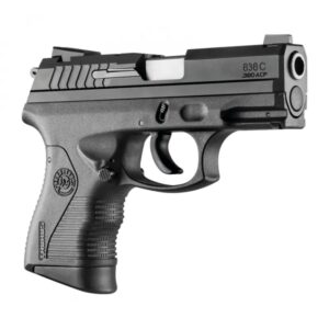 A Pistola Taurus 838 C (COMPACTA) é versão compacta do consagrado modelo 838. Reúne os melhores benefícios dos modelos full size e conta ainda com o tamanho reduzido, promovendo alta portabilidade do equipamento. Armação em polímero, sistema de disparo com cão, ação simples e dupla, miras com trítio e três carregadores.